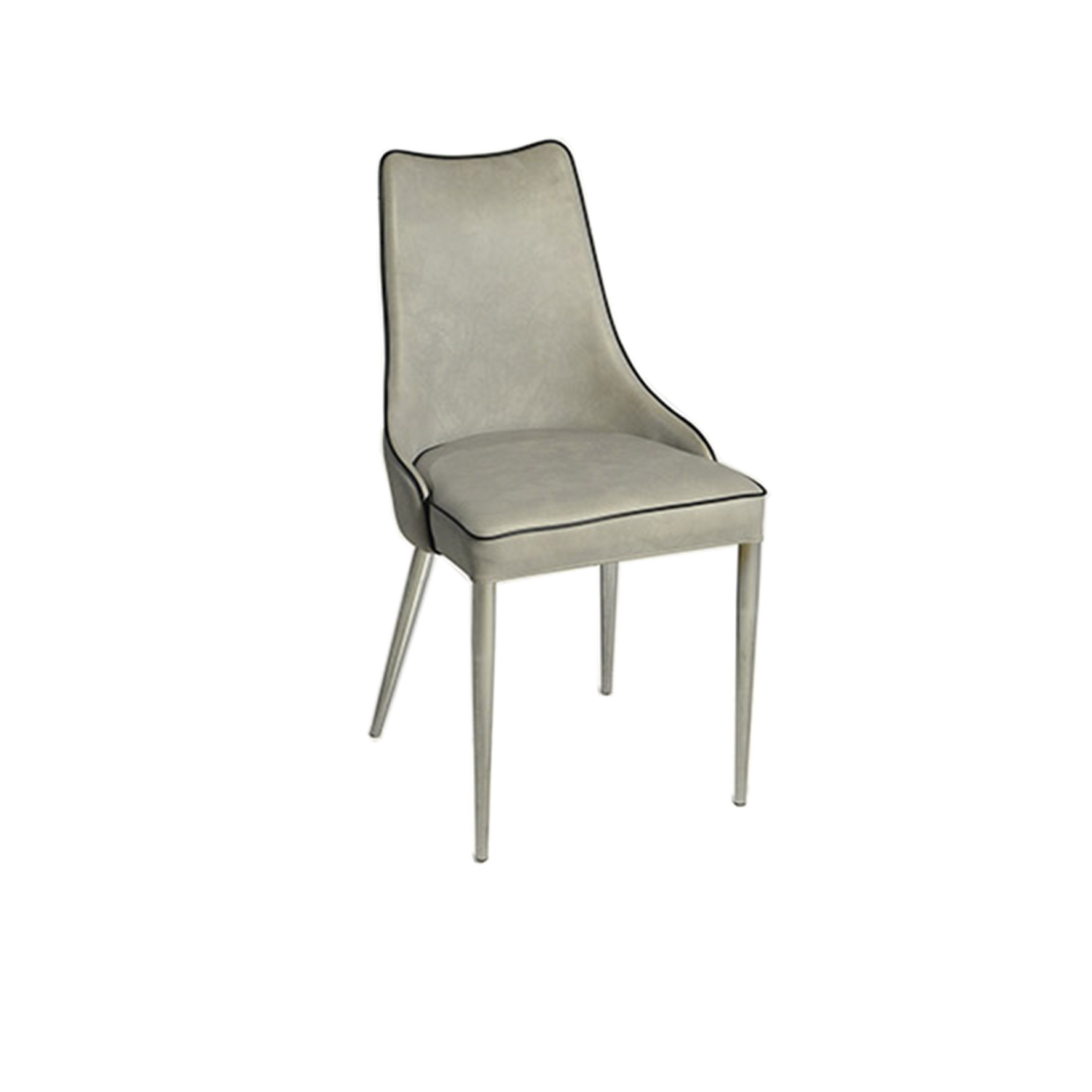 Silla tapizada en símil cuero o tela, patas metálicas cromadas o con pintura epoxi.