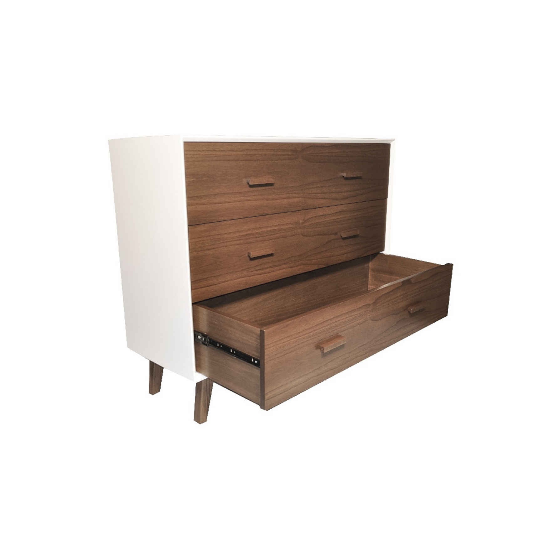 Opción 1: Estructura en MDF laqueado, cajones y patas en paraíso. Opción 2: Todo en madera de Paraíso.