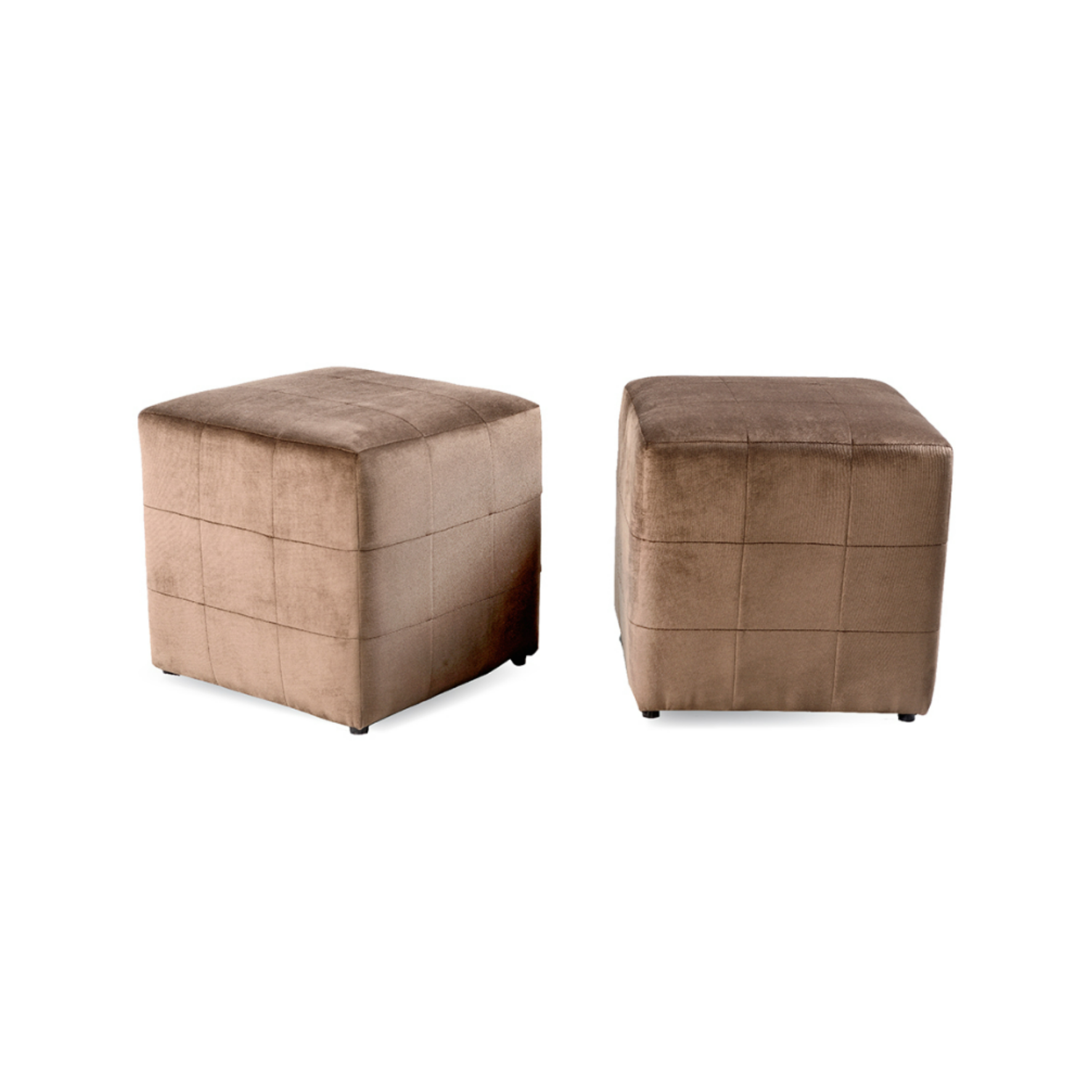 Banqueta con forma de cubo, con costuras en forma de cuadrícula,  tapizado en género a elección.