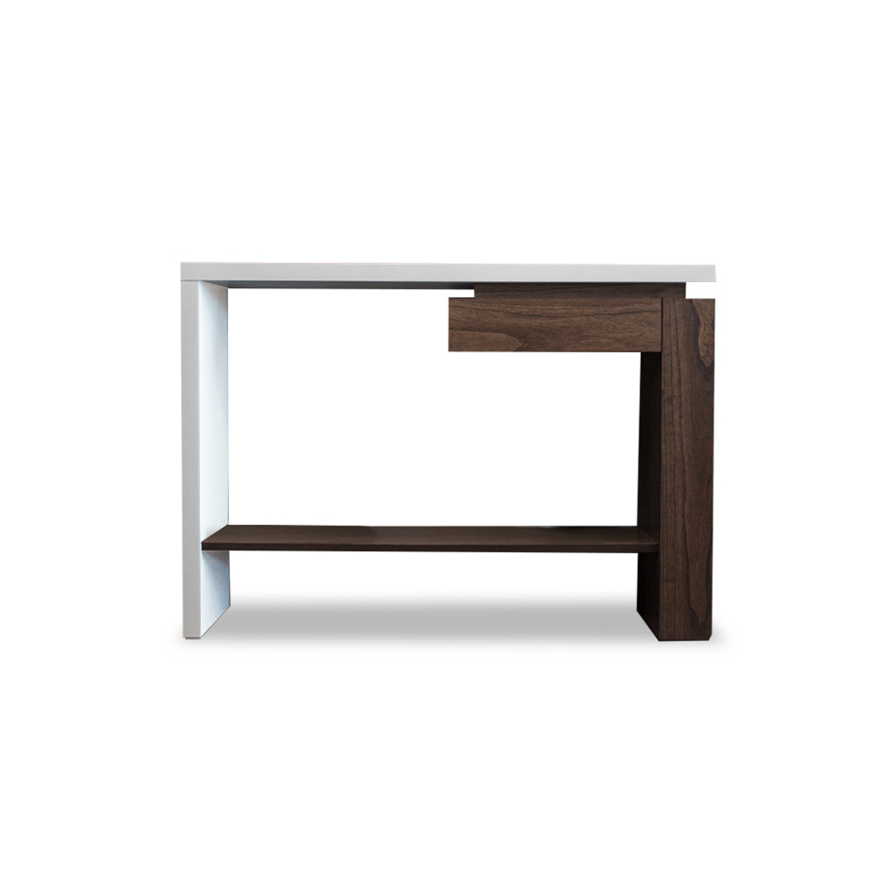 Combinado en madera de paraiso y MDF laqueado. Cajón y estante.