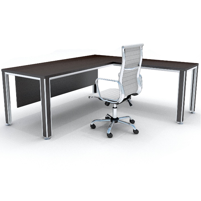 Escritorio con base en aluminio anodizado natural, patas 8x8cm con melamina. Extensión izquierda o derecha de 90/100/110/140×60.
