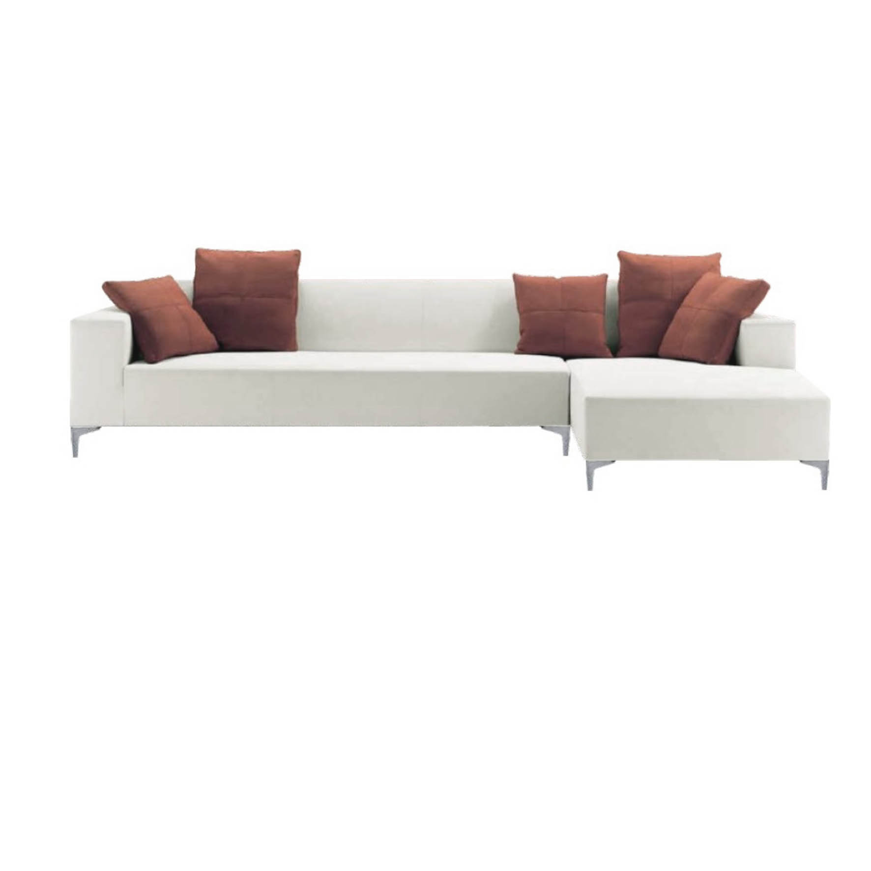 Rinconero tapizado con género a elección. Patas de aluminio. Opcional: puff aparte.