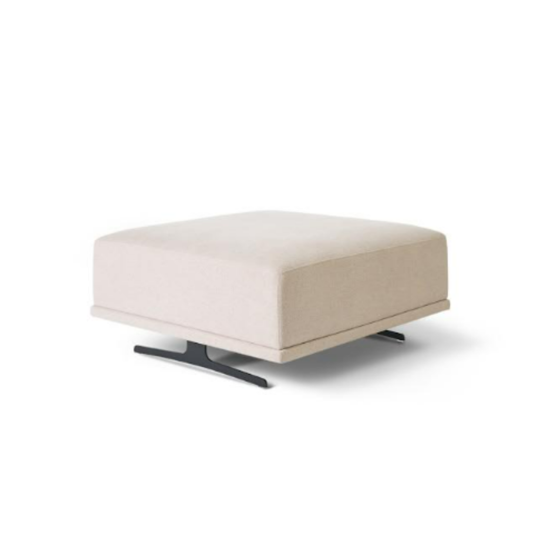 Banqueta cuadrada con patas de hierro, tapizado en género a elección.