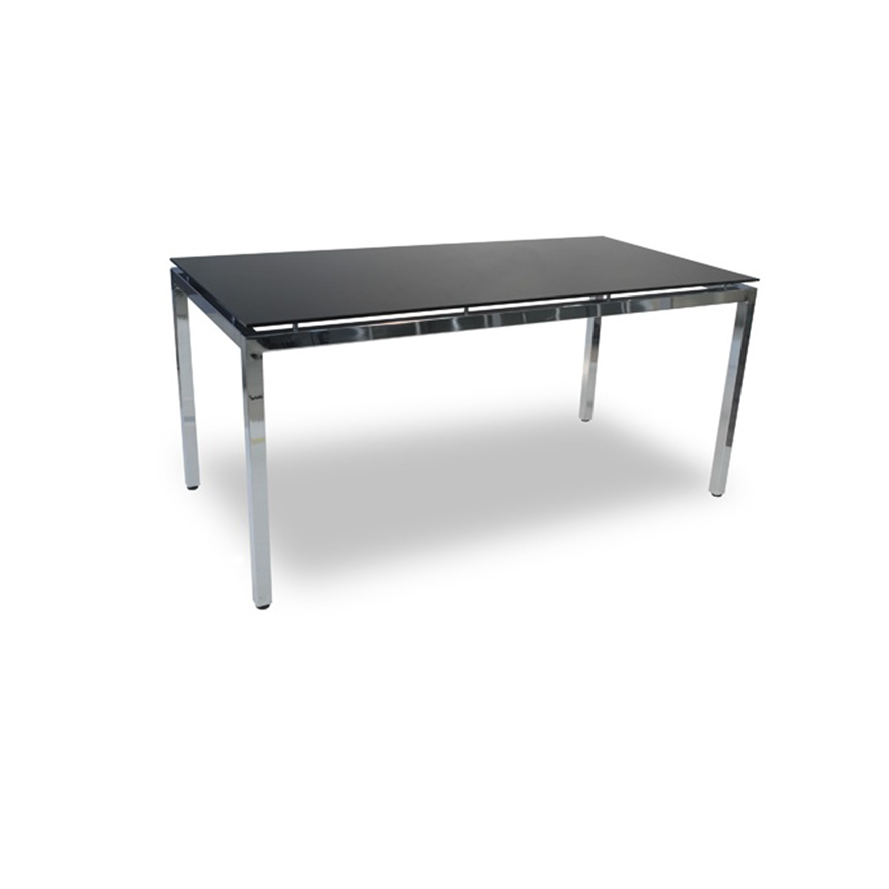 Estructura cromada, o con pintura epoxi, tapa laqueada, lustrada, o de cristal.