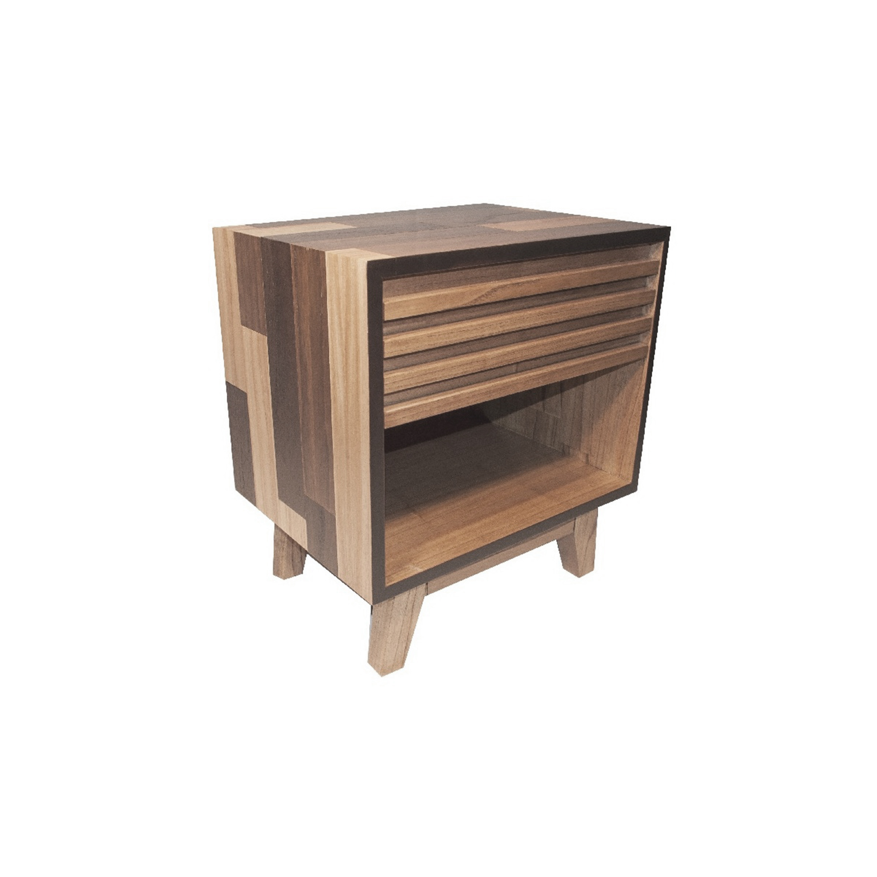 Estructura en tablero combinado, base en paraíso, frente con madera paraíso aplicado. Hueco libre con fondo.