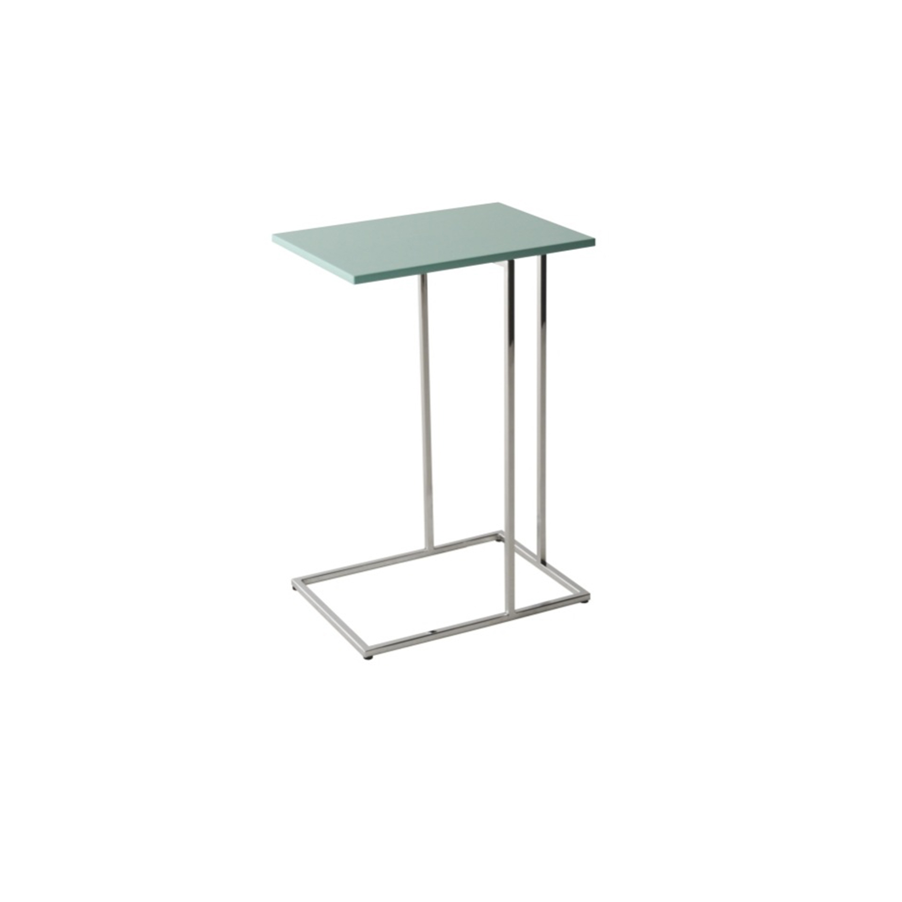 Mesa de arrime con estructura de caño cromado, tapa en madera lustrada o laqueada según muestrario.