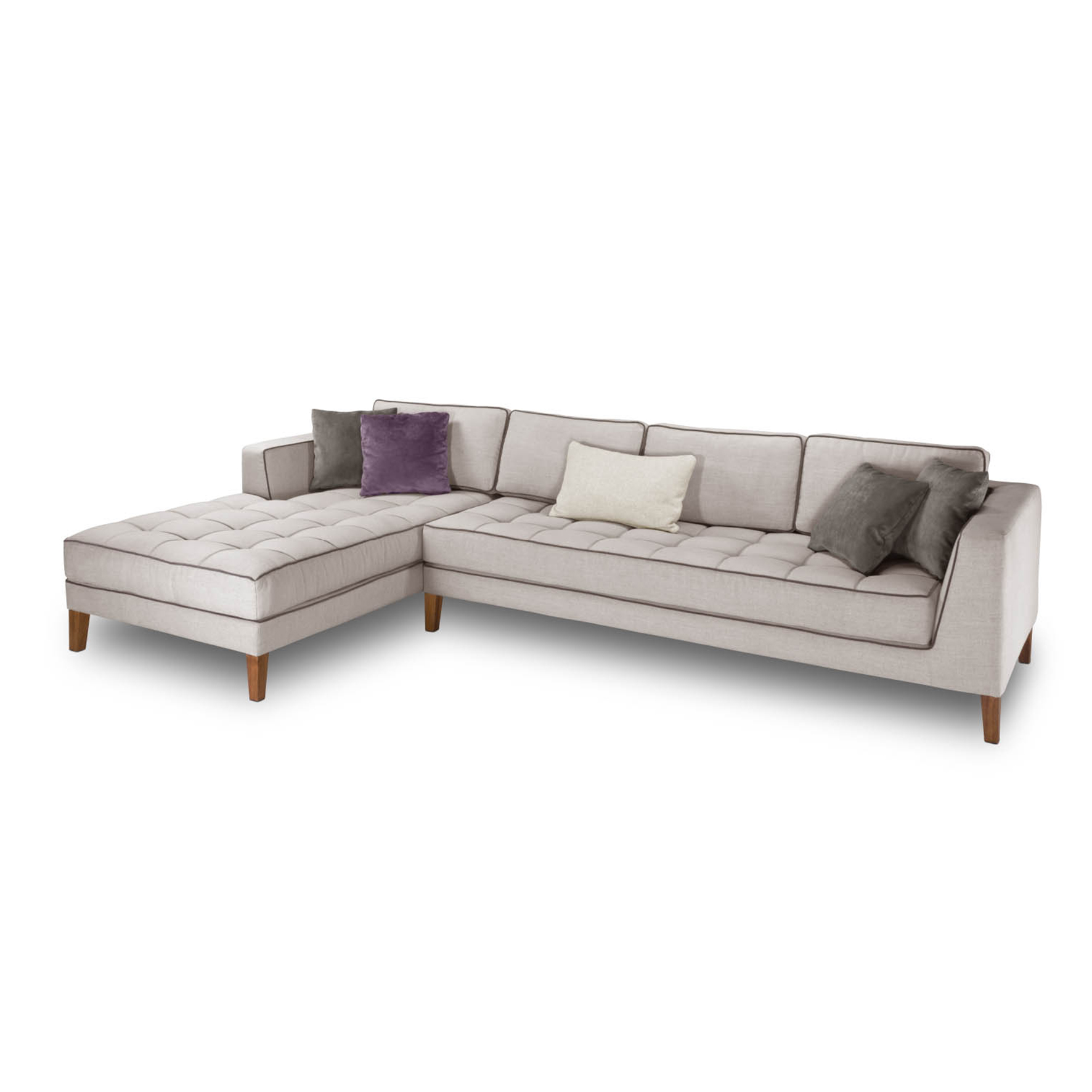 Rinconero con patas en madera maciza de lenga, lustre según muestrario, soft de alta densidad, género a elección.