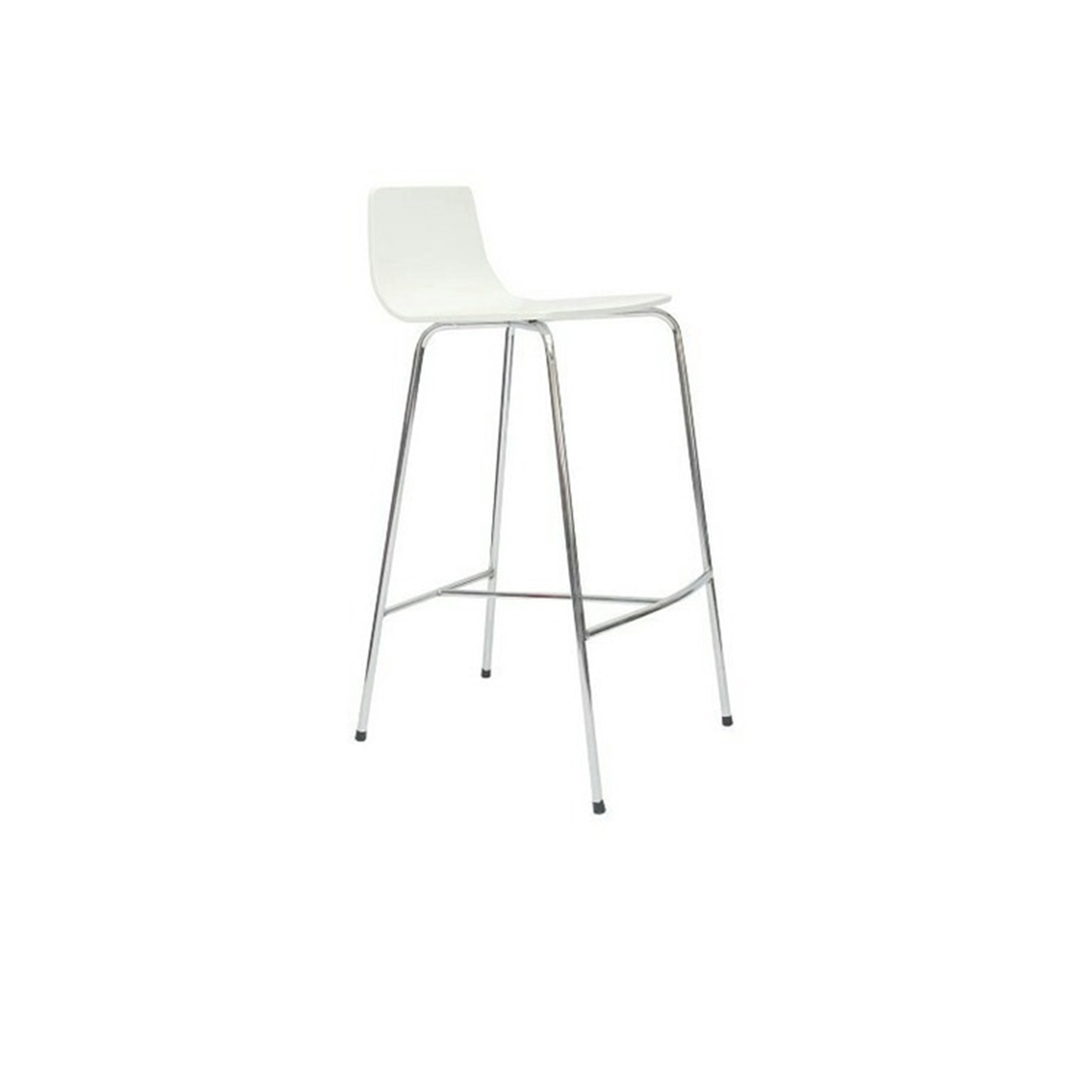 Taburete en caño cromado, casco en multilaminado en guatambú, lustre poliuretano en varios colores, opción casco tapizado con soft.